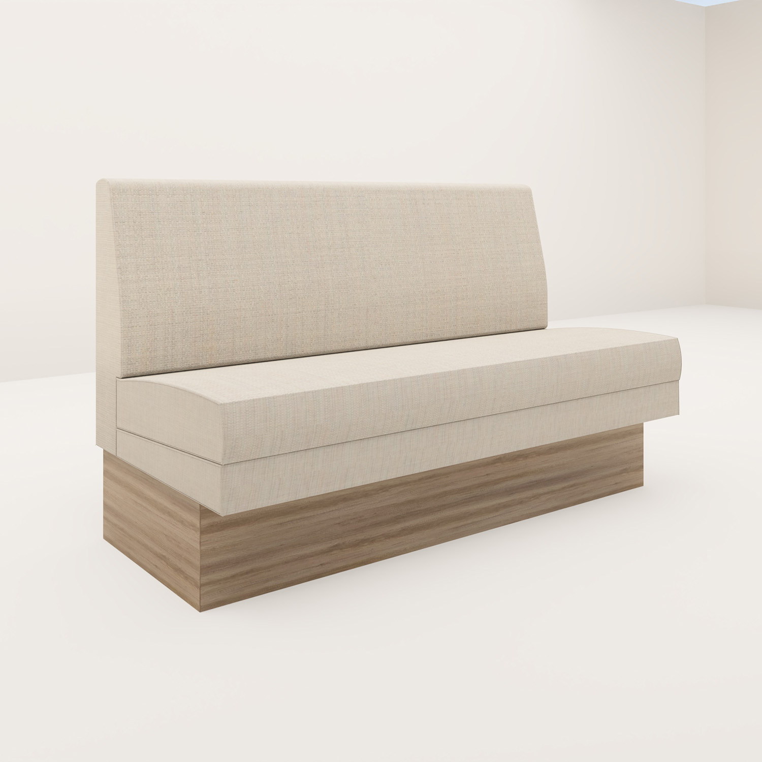 Klassisk restaurangsoffa anpassad till dina mått. På sockel i laminat eller fanér. Löstagbar sits. Som standard med dining sitthöjd och slät rygg. Lätt svankstöd. Totalhöjd ca 900 mm. Passar även som rund soffa. Möjligt att klä i textil, läder eller konstläder.