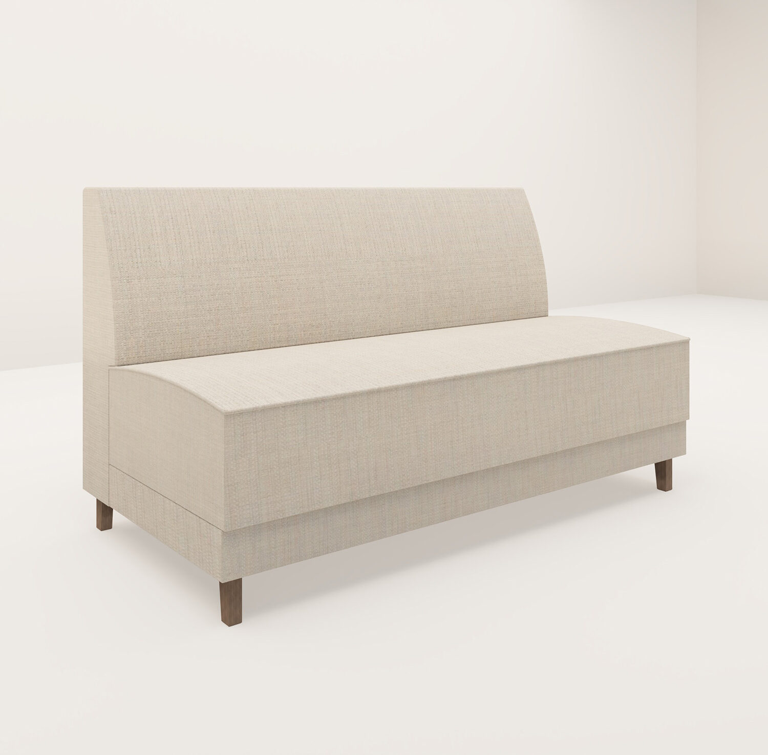 Generös soffa med loungekänsla och anpassningsbara mått. Standard till låg sitthöjd. På ben eller på sockel. Slät rygg som standard. Passar även som rund soffa. Möjligt att klä i textil, läder eller konstläder. Löstagbar sits.